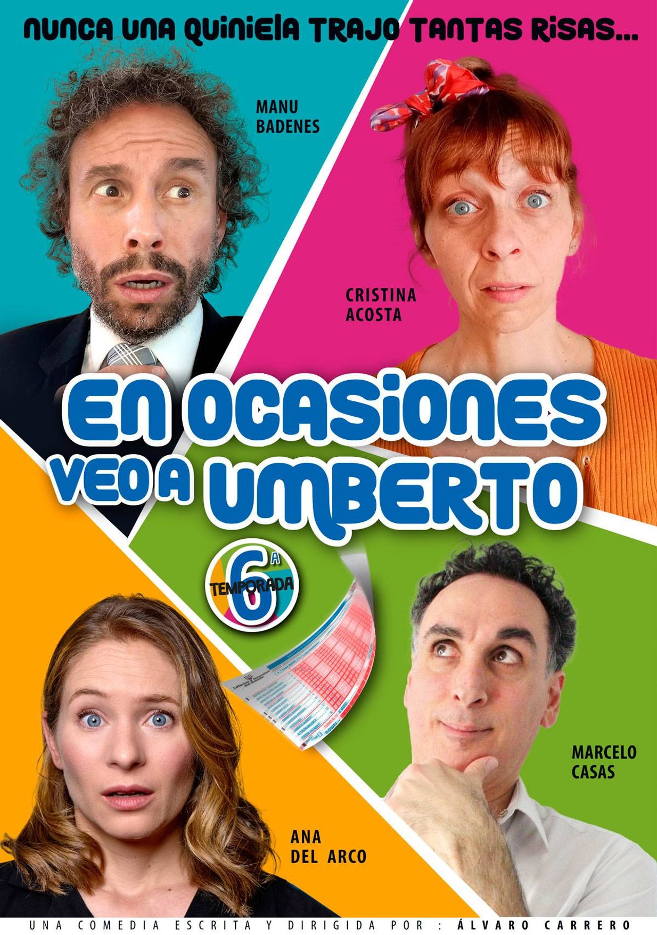 Umberto, al que da vida Marcelo Casas, era un hombre normal, felizmente casado, con sus gustos y aficiones, como cualquier otra persona. Concretamente le gustaba el fútbol y, sobre todo, echar la quiniela… ¡Por lo que pudiera pasar! Lo que no se imaginaba que lo que le pasaría sería que moriría. Su viuda, Amparo, encarnada por Ana del Arco, afronta la triste situación como puede, hasta que una desbaratada amiga suya pondrá patas arriba su vida y su casa. Pili, que es como se llama dicha amiga, e interpretada por Cristina Acosta, no para de darle vueltas al hecho de cómo murió Umberto. Un gol fue el detonante de la situación, un maravilloso gol que le dio al protagonista nada menos que el premio de la quiniela, el pleno al 15 y una cantidad desproporcionada de dinero. Ahora el problema es encontrar el boleto para que alguien pueda cobrar esa suma. Pero… ¿Dónde lo dejaría Umberto? Entre llantos de la viuda y la búsqueda desenfrenada de Pili, aparece en escena un tercero en discordia: Mateo, de manos del gran Manu Badenes. Mathew… o más bien Mateo prometía en su engañosa publicidad ser Medium y establecer conexión con seres del más allá, ya fuera para saber de ellos, despedirse… o saber dónde pudieron dejar algo. Tras tomar la surrealista decisión de llamarle, ambas con sus propios motivos, Amparo deseosa de poder despedir a su difunto marido y Pili como loca por saber dónde está la dichosa quiniela, se ponen en contacto con el peculiar vidente, que de espiritista solo tenía la palabrería. Una desternillante escena dejará paso a la más imposible de las opciones… ¿Y si Umberto hubiese podido acudir a la llamada? ¿Y si es sólo Mateo el que puede verle? ¿Y si no se lo cree ni el propio Mateo?