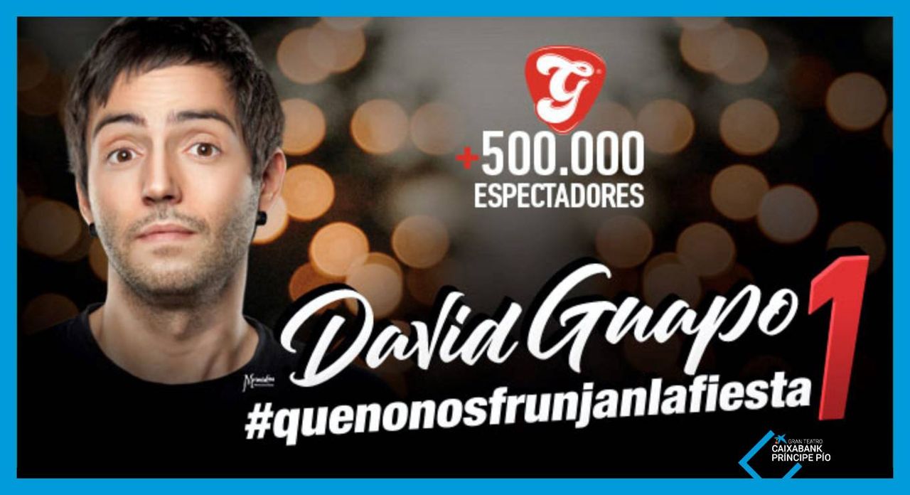 Con todos los ingredientes del cóctel que conforman un buen festejo, nos encontramos en el desternillante espectáculo del cómico barcelonés David Guapo. Tuvimos el placer de asistir a su ya conocido Que no nos frunjan la fiesta, un show divertidísimo cargado de chistes, humor, anécdotas y un poquito de crítica hacia el público con el mejor de los gustos. Bien es sabido que la puntualidad ya no es tan estricta en los eventos teatrales ya que, aunque se especifica que no se permitirá el acceso al público una vez comenzada la función, en realidad no es así. Muchos son los artistas que sufren los ruidos y distracciones que se provocan con las llegadas tardías de los asistentes o los infernales móviles que siempre suenan, porque es que siempre suenan. El monologuista, con un absoluto derroche de talento, comicidad y sentido común, ponía el punto de atención a este tipo de cuestiones provocando las sonoras carcajadas en todo el patio de butacas. Y, si bien es cierto que era desde el humor, el mensaje queda ahí y, tan solo por la vergüenza que el espectador sufre al ser el foco de atención, esperemos que cale en lo más hondo de sus seres, ya que sería maravilloso. Por esta razón, desde aquí, mi enhorabuena a David Guapo, por saber decir jocosamente algo que todos los demás quisiéramos poder gritar.